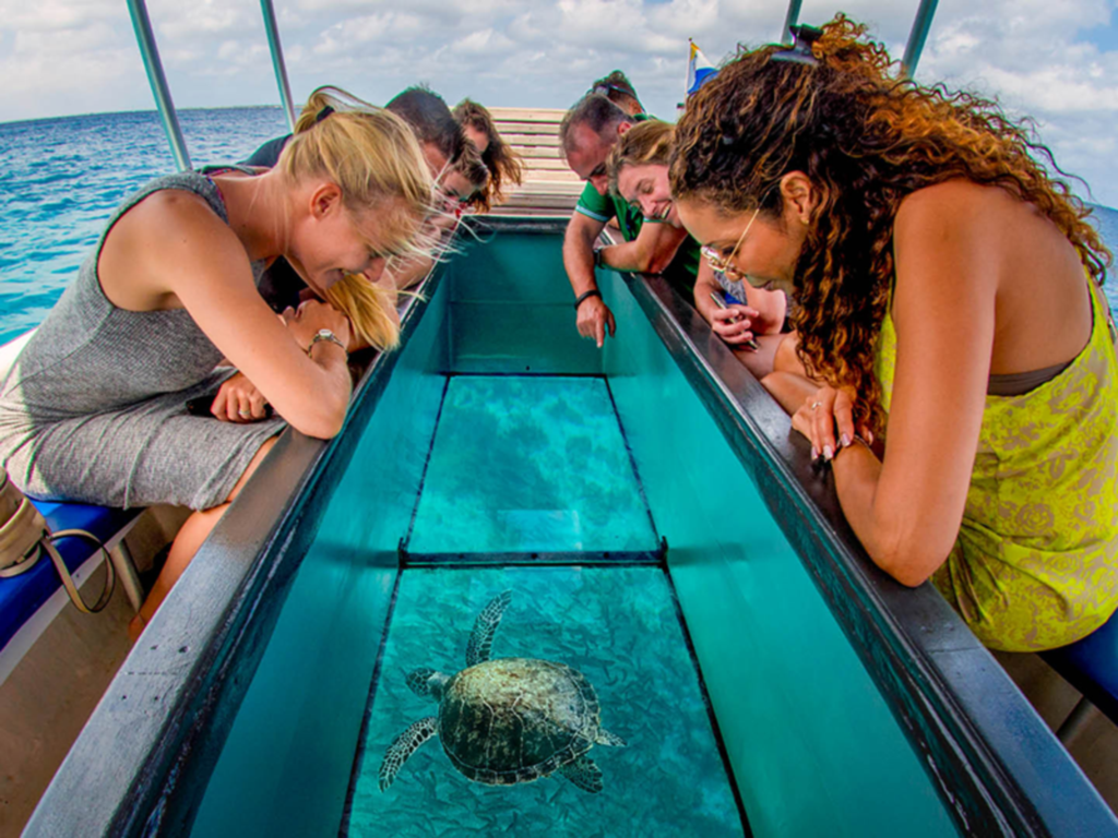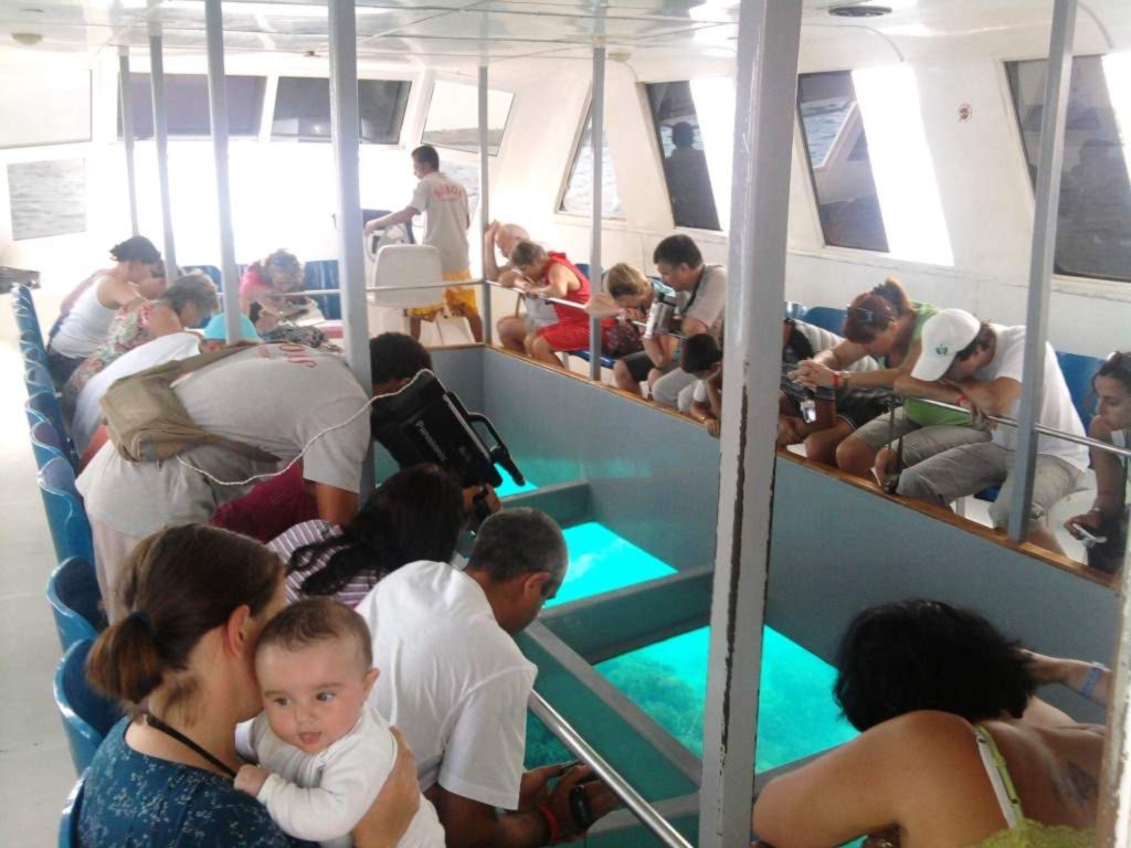 Imbarcati sulla nostra barca con fondo di vetro e incontra l'amichevole capitano di lingua inglese che si presenterà prima di dirigersi verso le splendide barriere coralline che circondano Sharm El Sheikh. Mentre attraversiamo le acque cristalline, osserveremo attraverso il grande scafo di vetro la straordinaria vita dei coralli e i bellissimi pesci colorati che vivono qui, oltre a cercare tartarughe, razze, meduse, delfini, pesci palla e barracuda !