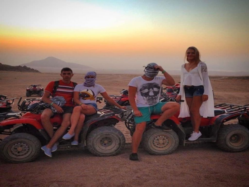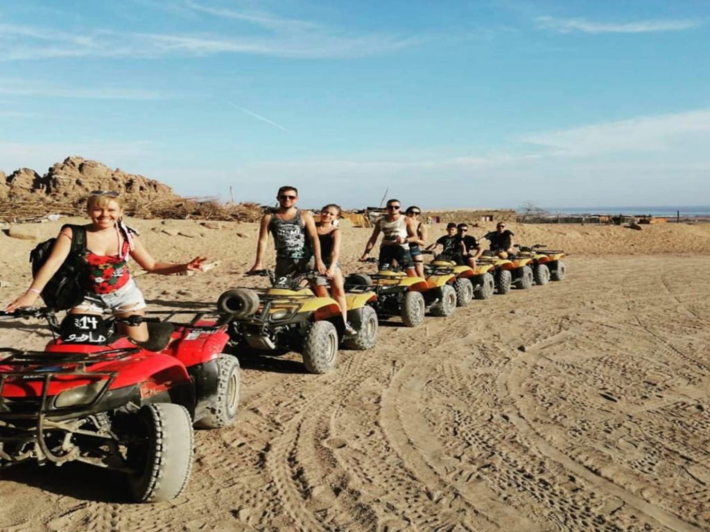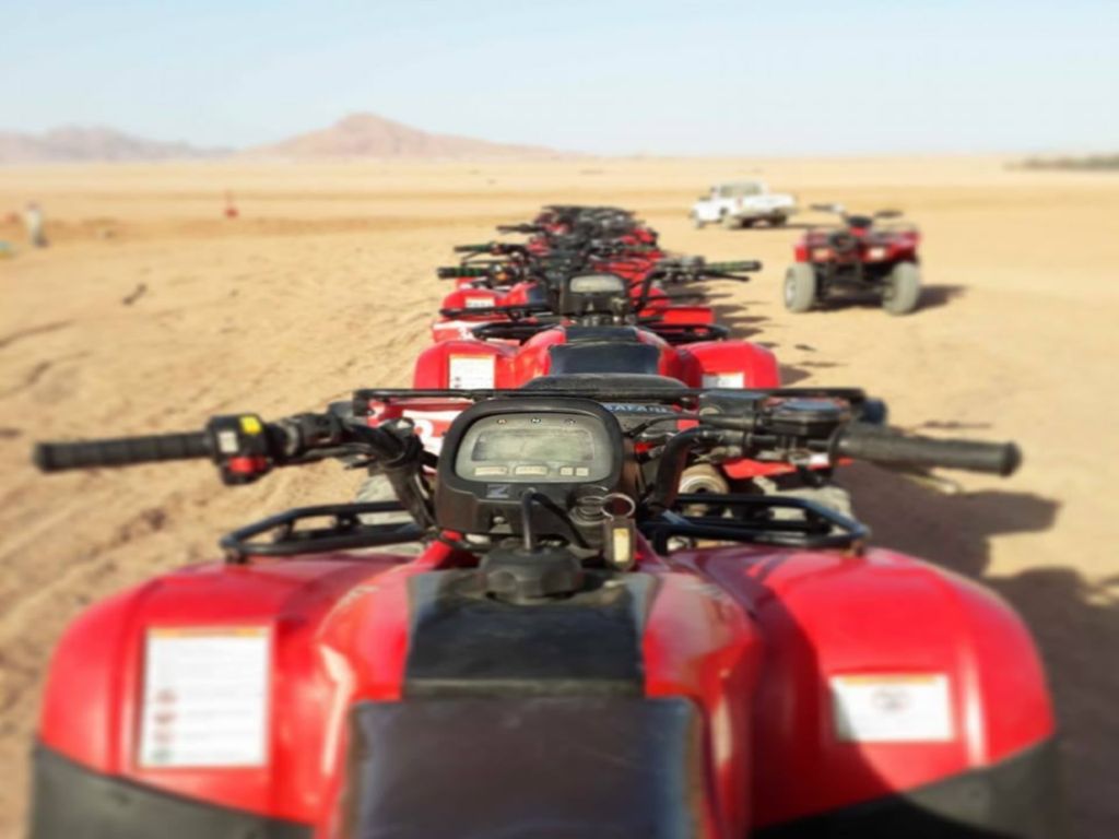 We’ll pick you up from the hotel at 9am where we start the Mega Safari at the motor bike centre for an exhilarating morning of Quad biking through the desert. Here your guide will give you a full safety briefing before you drive your Quad through the Sinai desert to Echo valley and stop at an authentic Bedouin tent for a rest, some cold water and lots of famous Egyptian hospitality and tea.