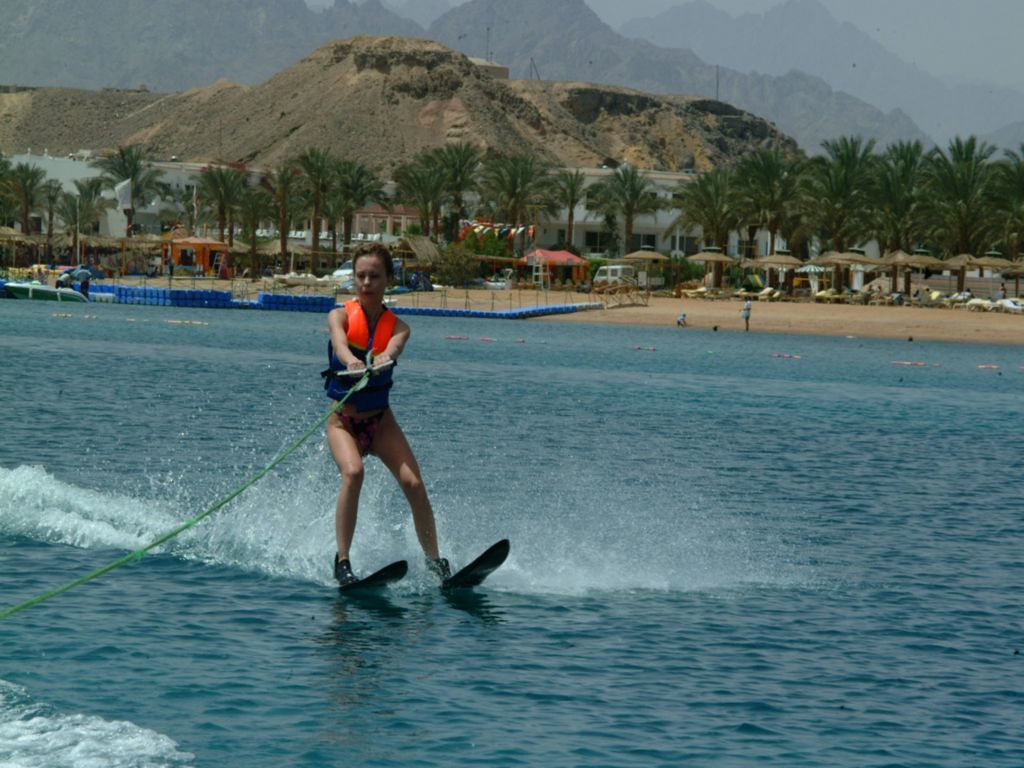 Water Skiing if you never experienced the sport before our team will consider this and the boat driver will not speed up giving the chance to get used to the water reflexes, the key behind enjoying this sport is to be able to take control of the board, lean Back and strengthen you legs, and of course not get panicked, you can learn all about the techniques required through our experienced team, Sharm peninsula is very well formed allowing all the water sport activity to be really enjoyable, safe and very easy to practice.
